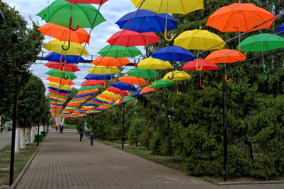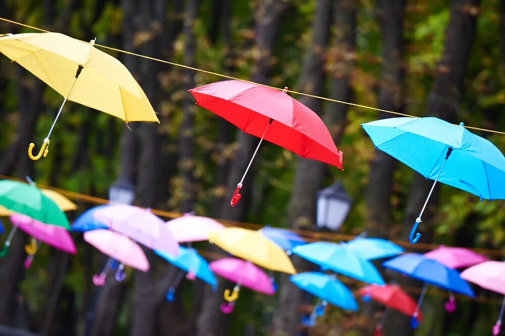 Зонтики яркие.