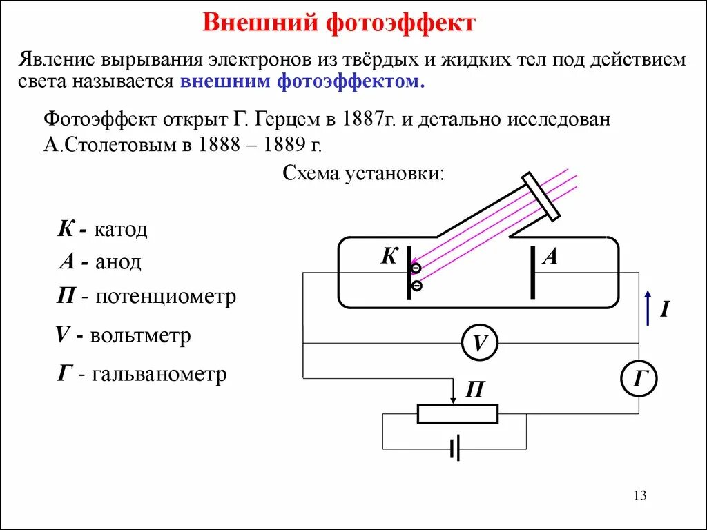 Внешний фотоэффект схема.