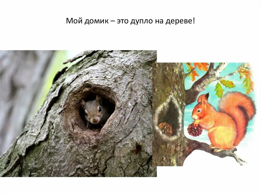 Белка в дупле для детей.