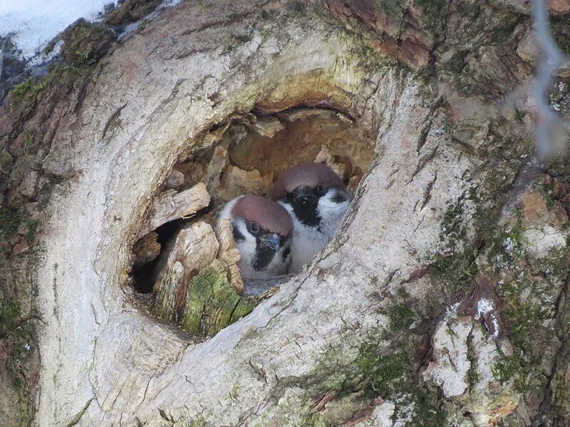 Дупло белки зимой.