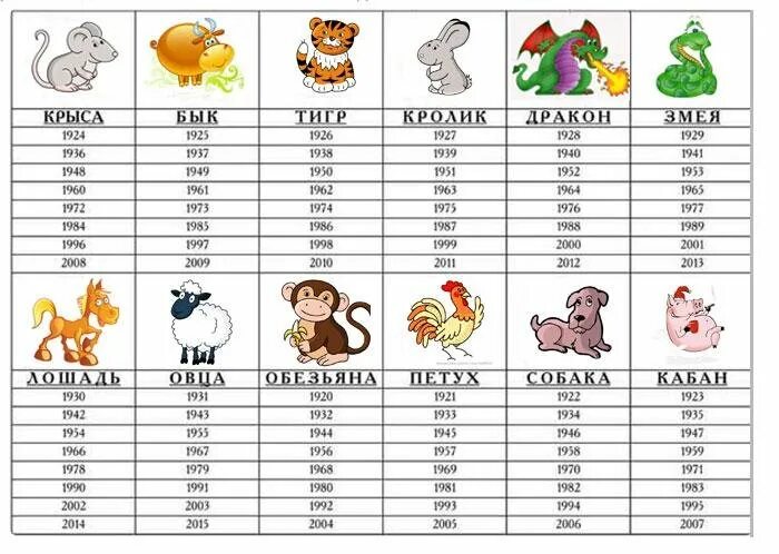 Китайский календарь животных по годам таблица с датами.