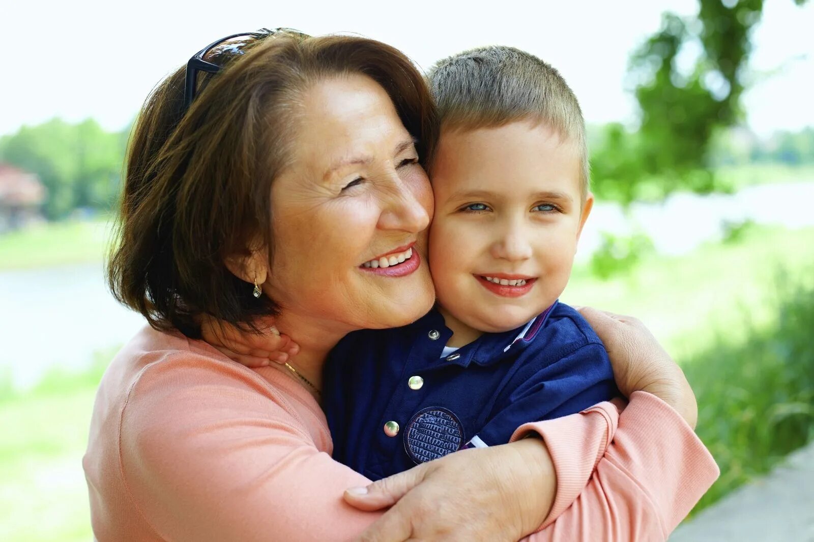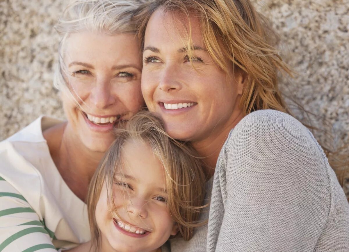 Женщина с ребенком улыбаются.