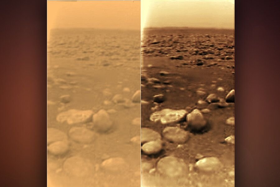 Поверхность спутника титана Гюйгенс.