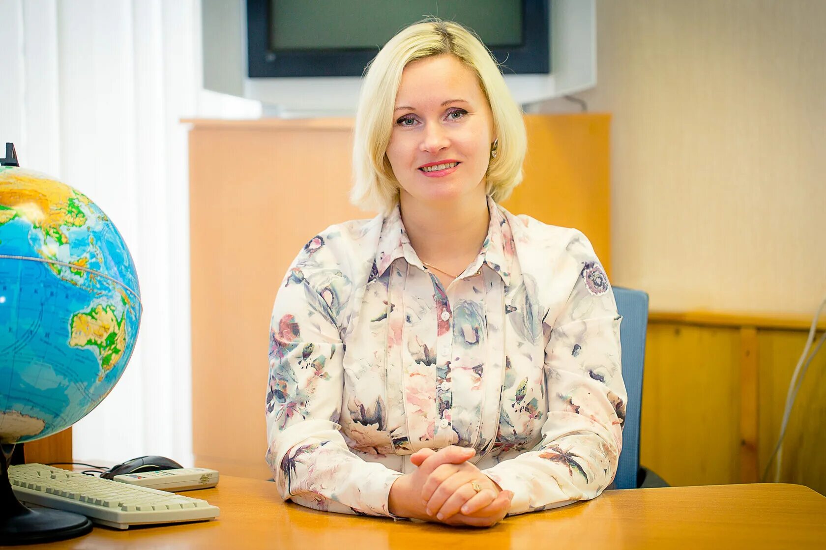 Учитель улыбается.