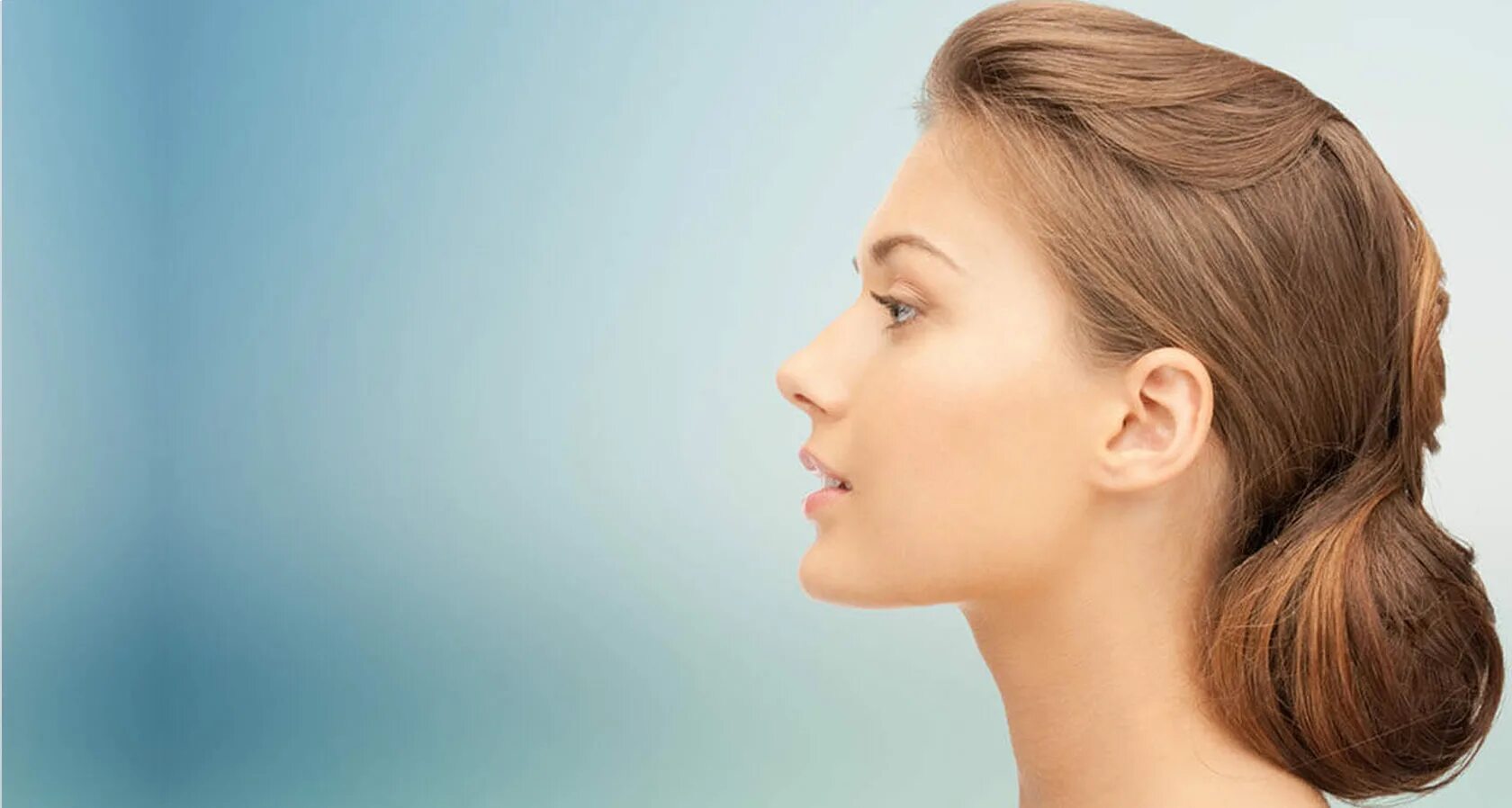 Лицо девушки в профиль.