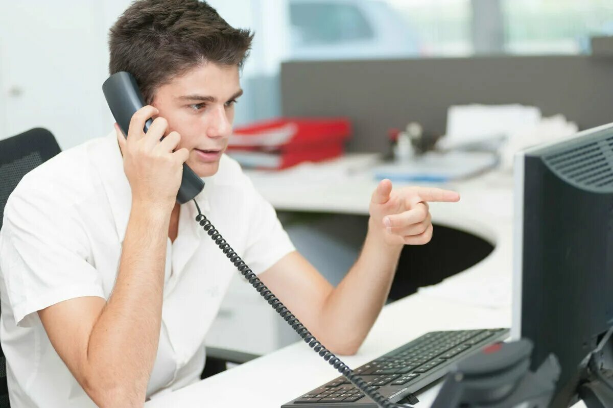 Человек с телефонной трубкой.