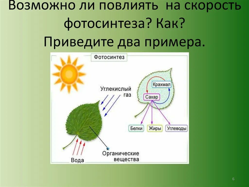 Процесс фотосинтеза у растений 6 класс.
