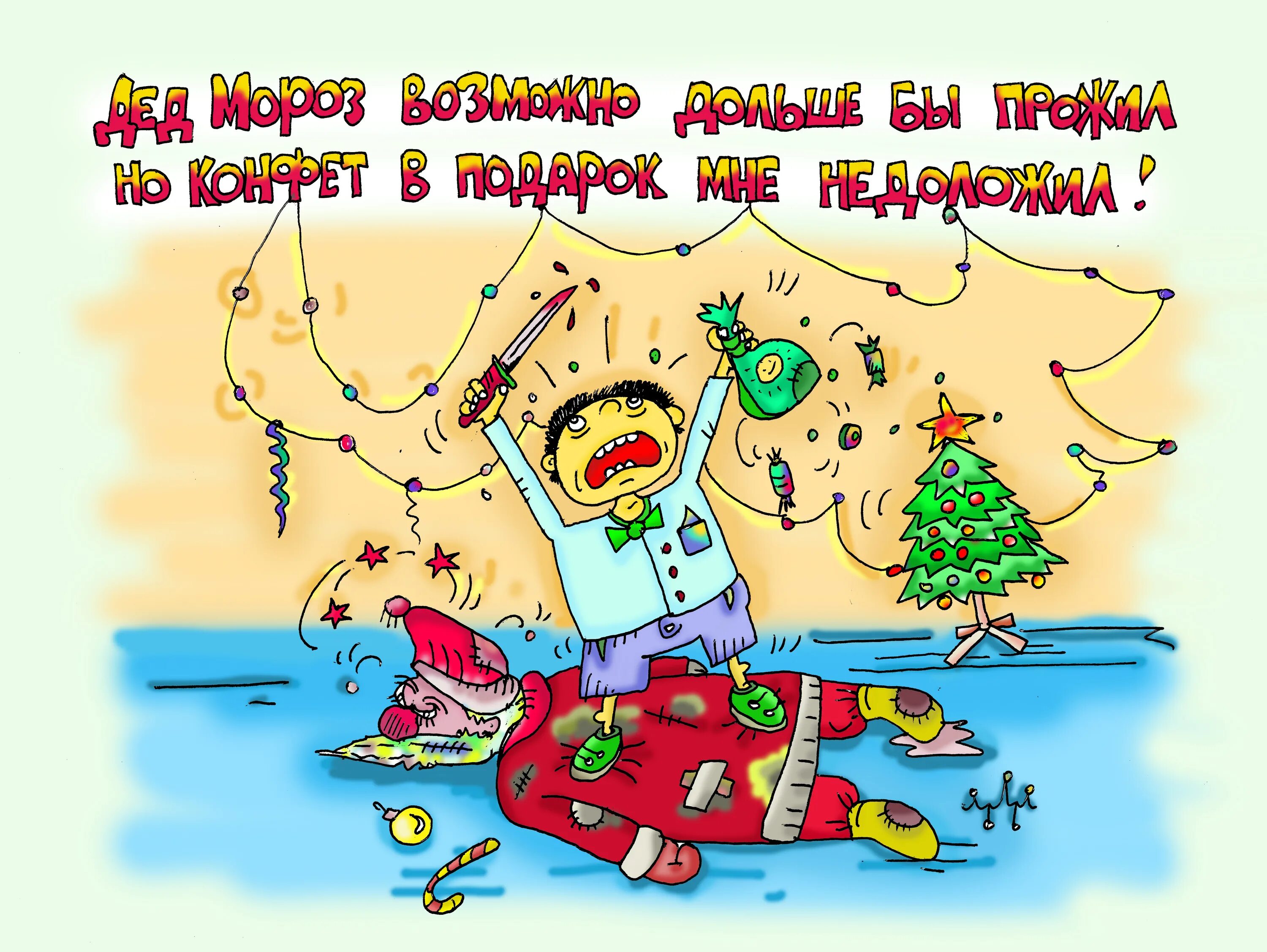 Прикольные новогодние рисунки.
