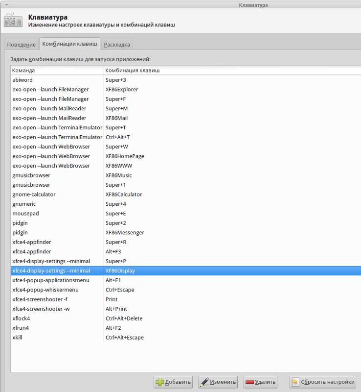 Горячие клавиши линукс.