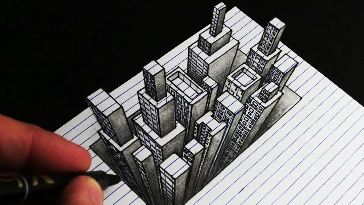 3д рисунки на бумаге.