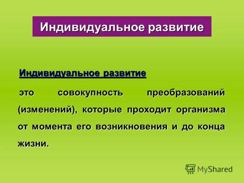 Определение индивидуальное развитие.