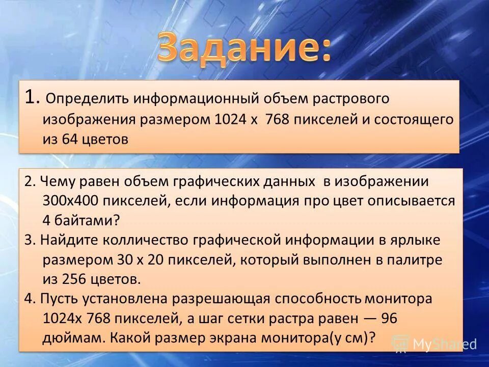 Как найти информационный объем растрового изображения.