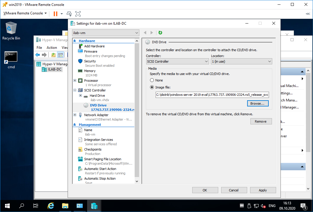 Вызвать командную строку ESXI.
