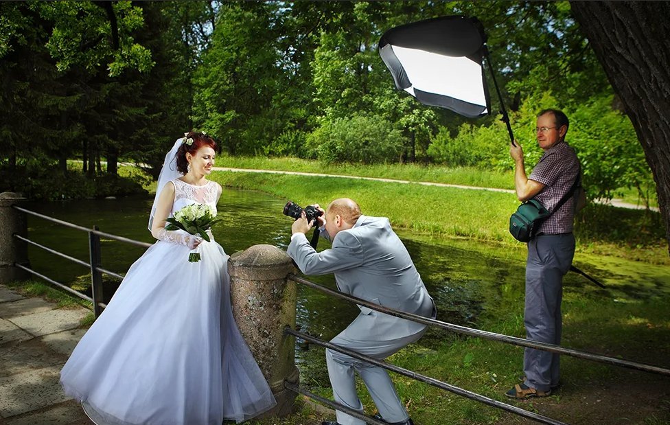 Съемка на улице с софтбоксом.