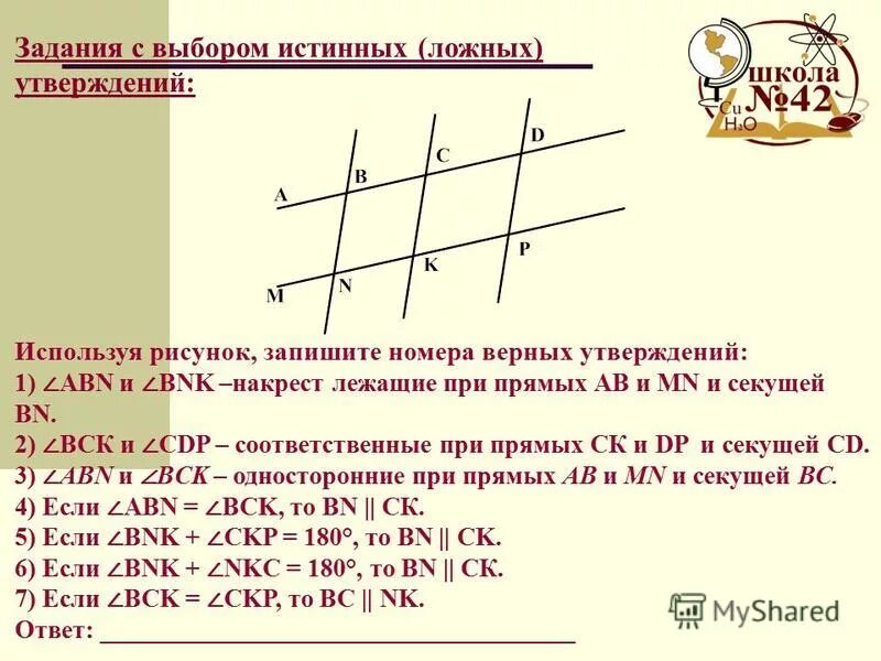 Используя рисунок укажите верные утверждения.
