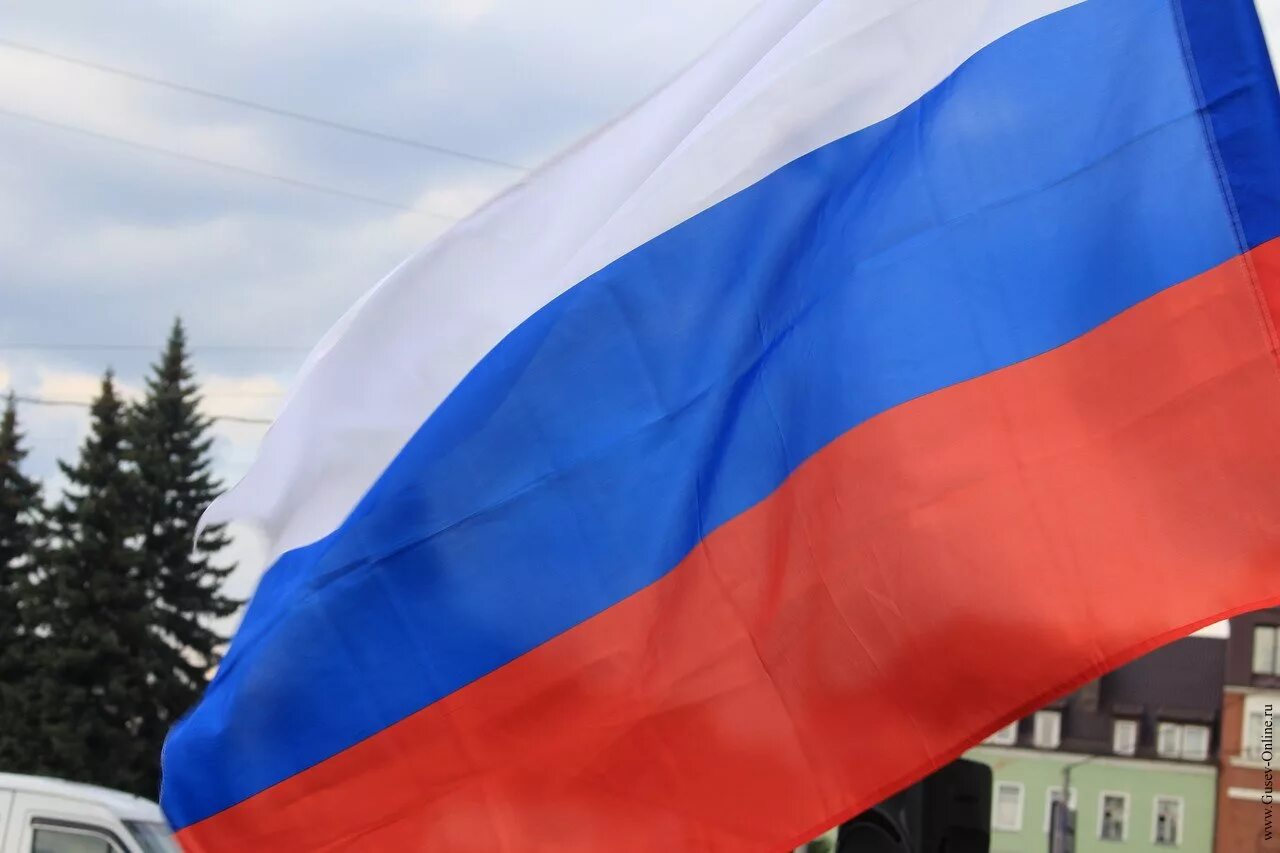 Государственный флаг РФ на флагштоке.