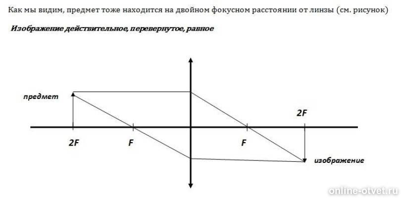 Предмет расположен на двойном фокусном расстоянии.