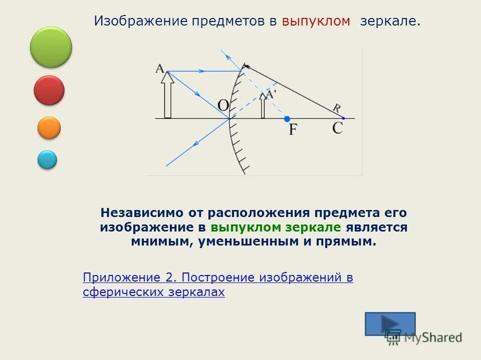 Построение изображения предмета в линзах.