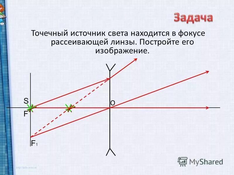 Построение источника света в рассеивающей линзе.