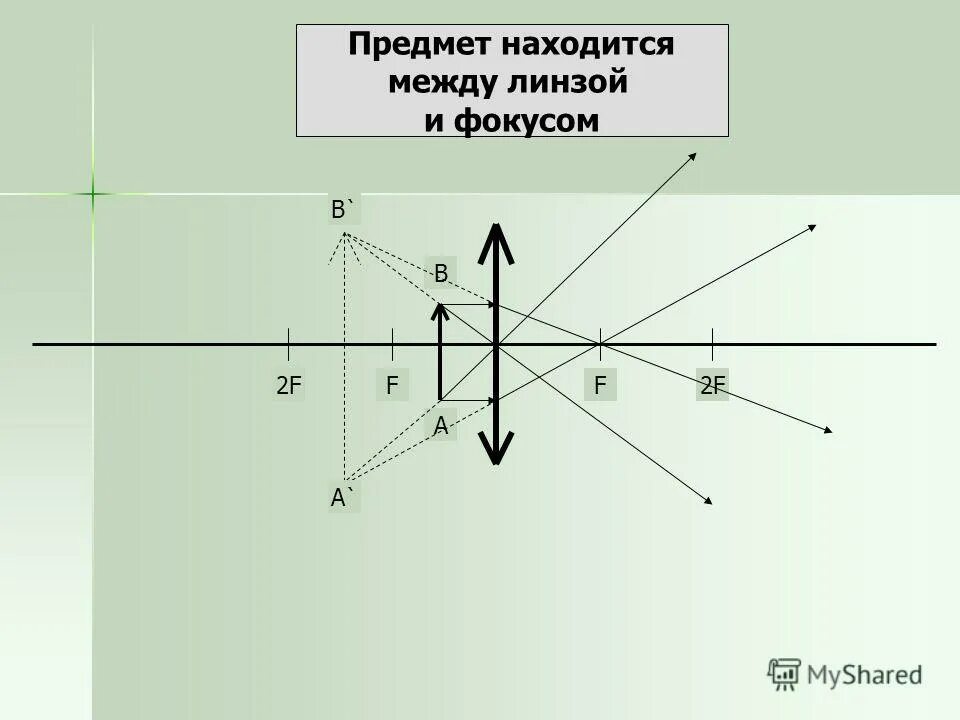 Изображение предмета находящегося за двойным фокусом.