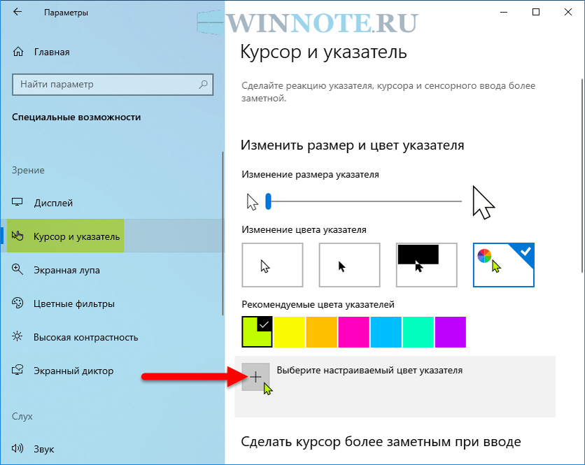 Как поменять указатель курсора на виндовс 10.