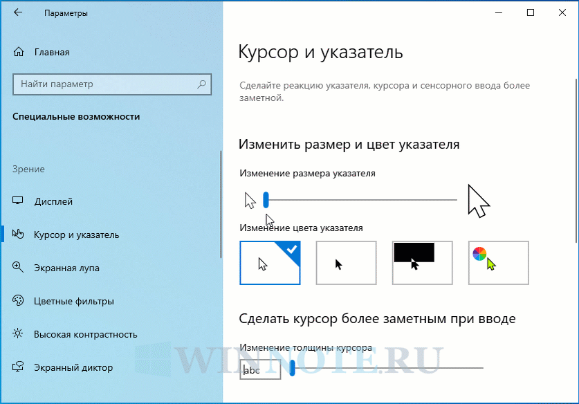 Как изменить курсор мыши на windows 10.