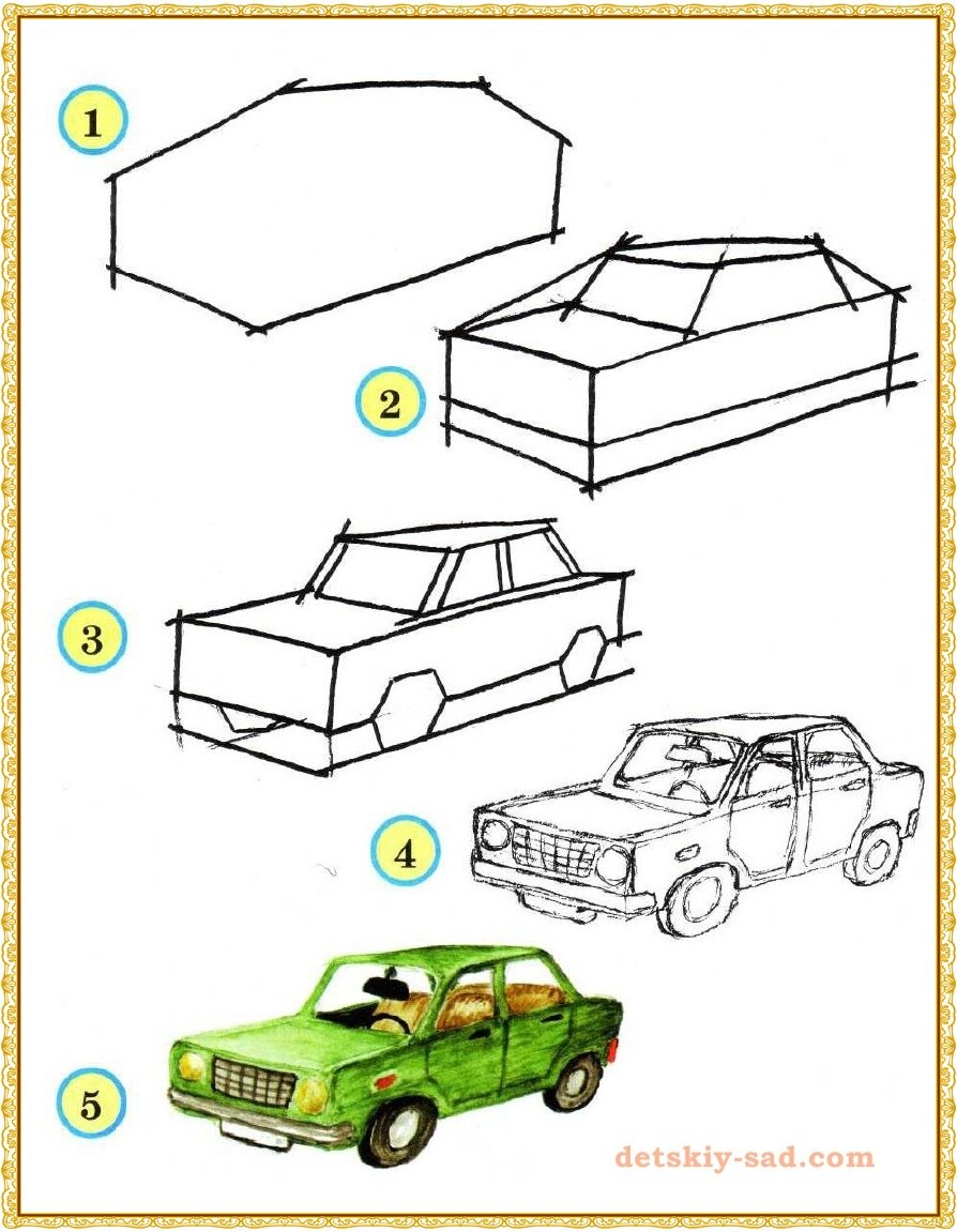 Как рисовать машину поэтапно.