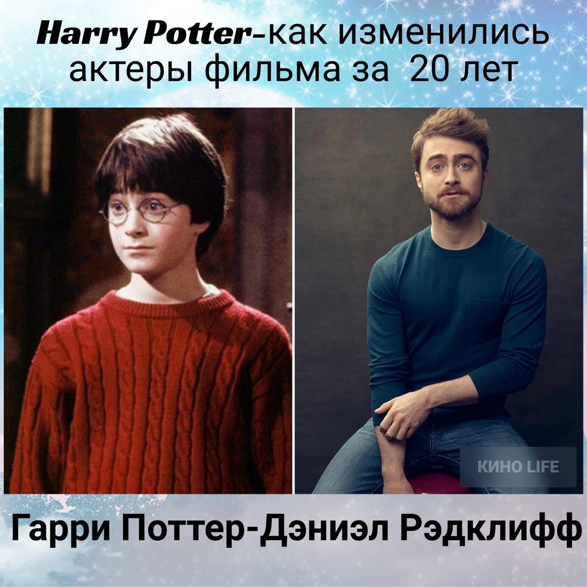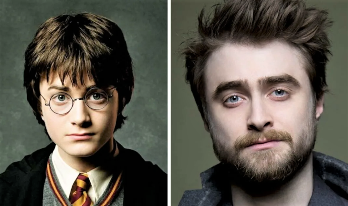Дэниел Рэдклифф в Гарри Поттере и сейчас.