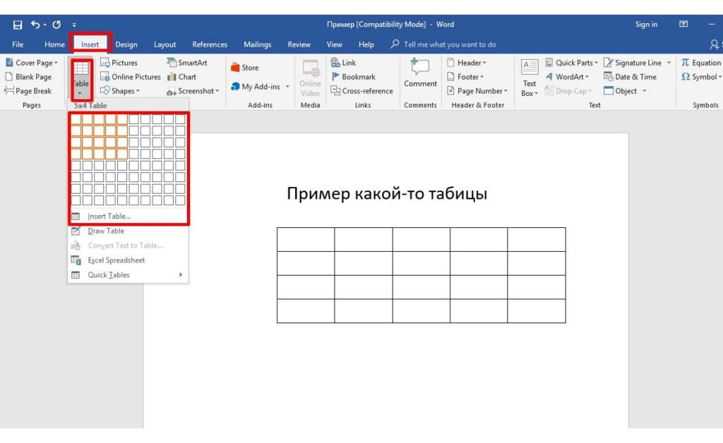 Как вставить таблицу в Word.