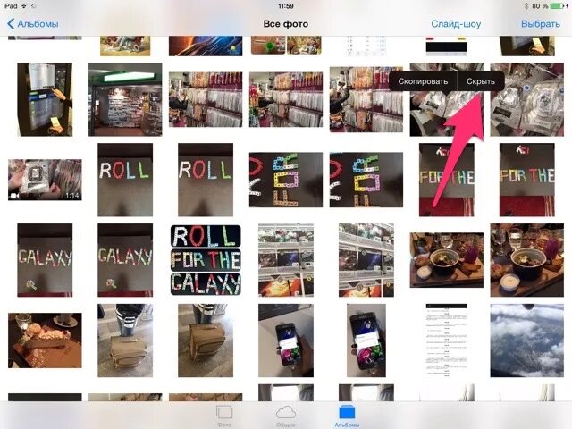 Как скрыть скрытые фотографии.
