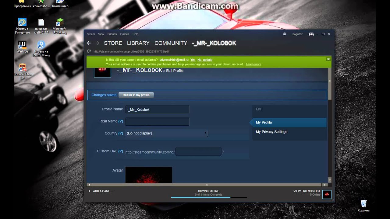Как поменять ник в стим.