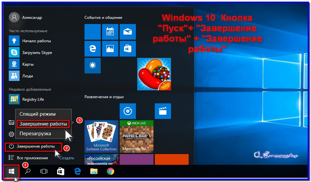 Выключение компьютера Windows 10.