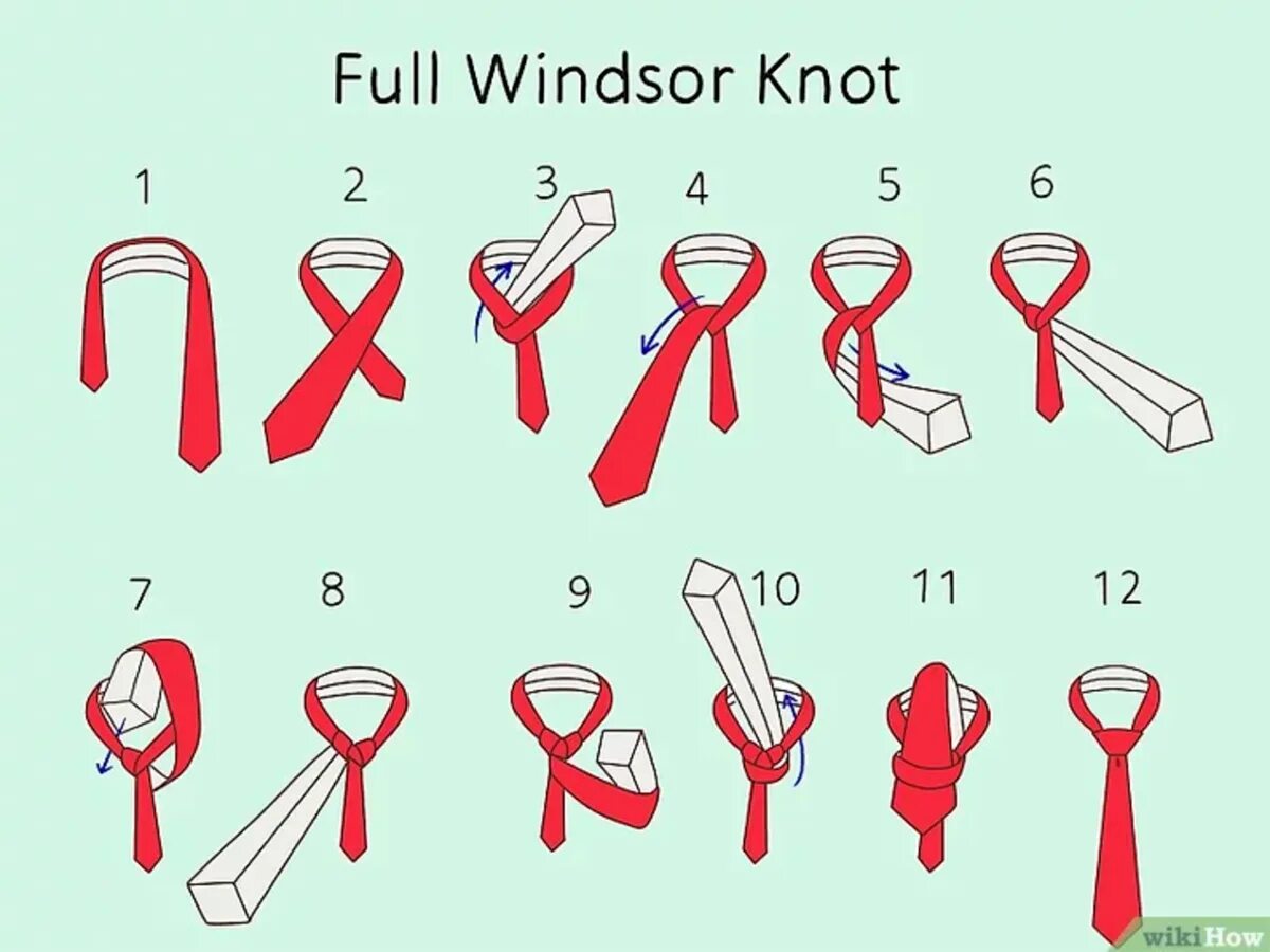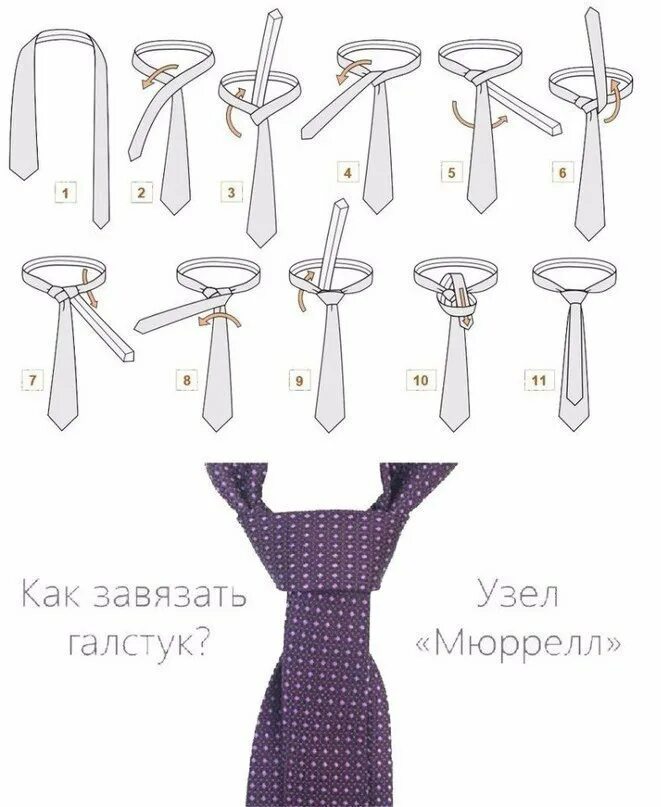Пошаговая схема завязывания галстука.