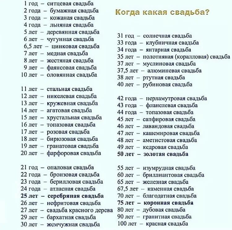 Годовщина свадьбы по годам.