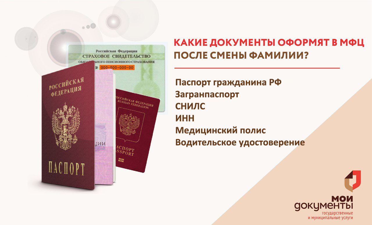 Какие документы нужны менять при смене фамилии.