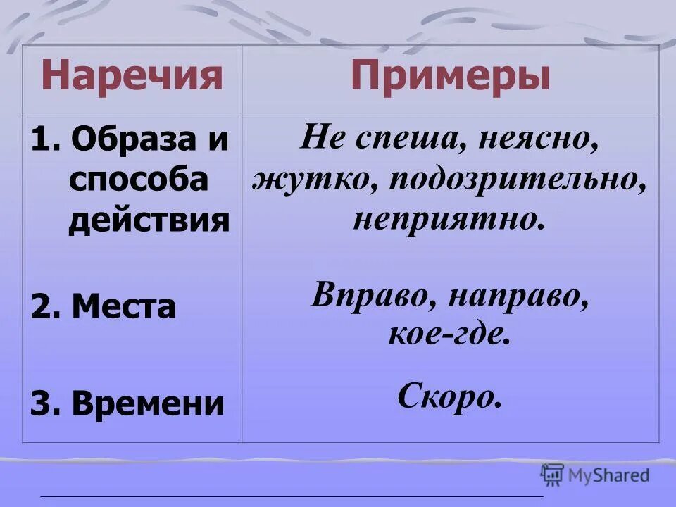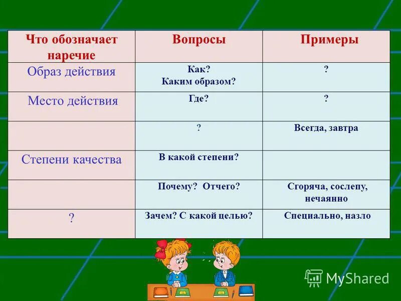 Вопросы наречия.