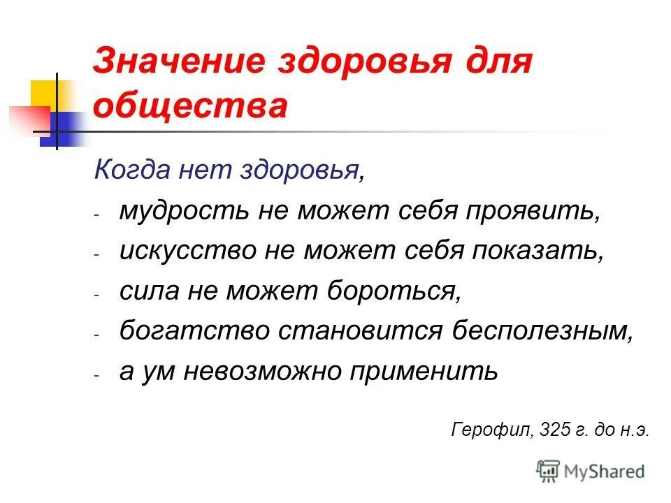 Значение здоровья.