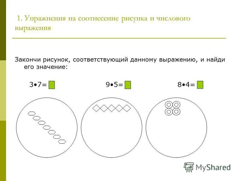 Какому рисунку соответствует каждое выражение.