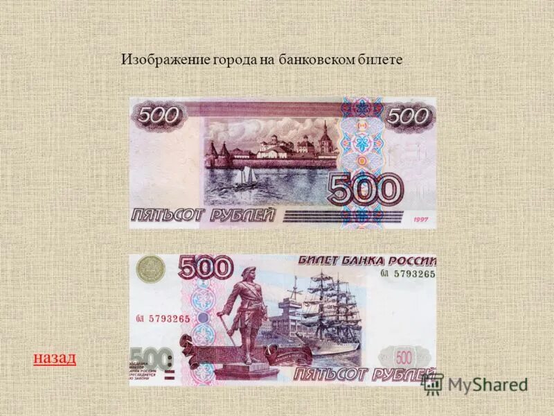 Какой город изображен на 500 рублевой купюре.