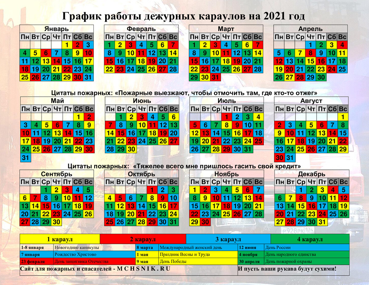 Календарь пожарных Караулов на 2022 год.