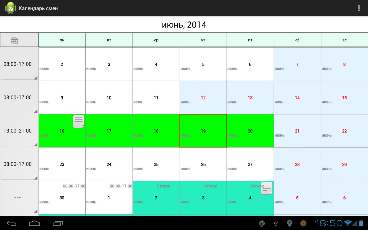 Календарь смен.
