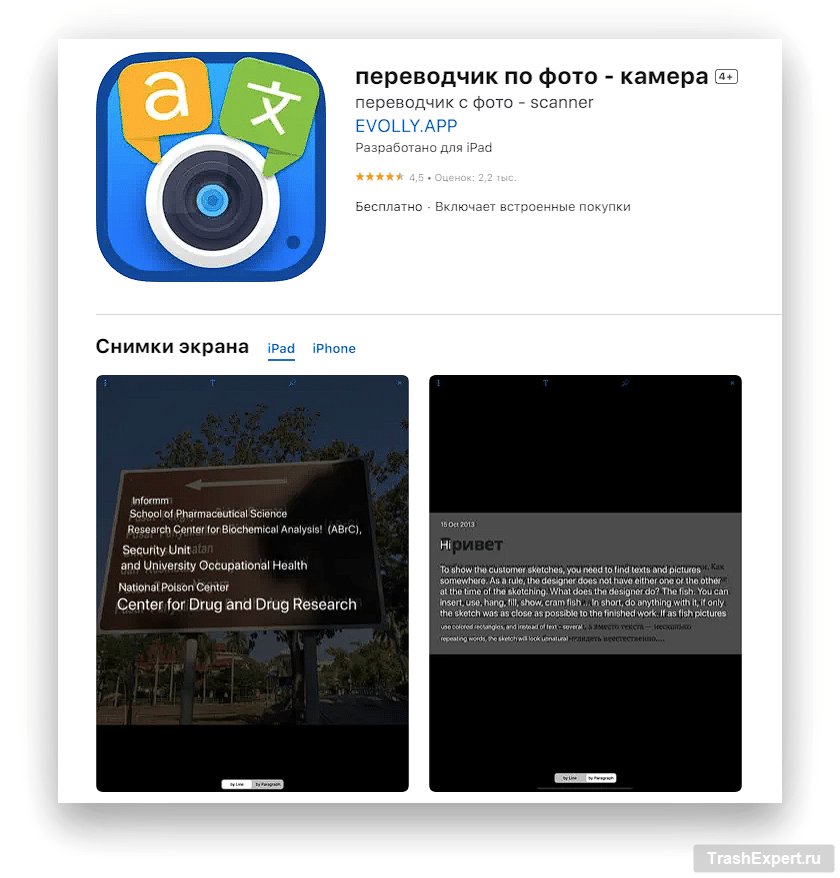 Приложение камера переводчик.