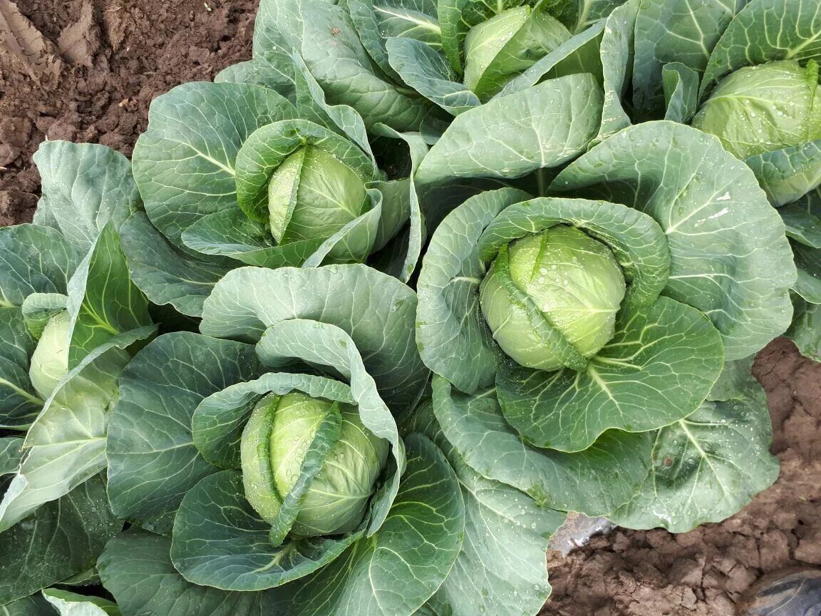 Капуста белокочанная на огороде.