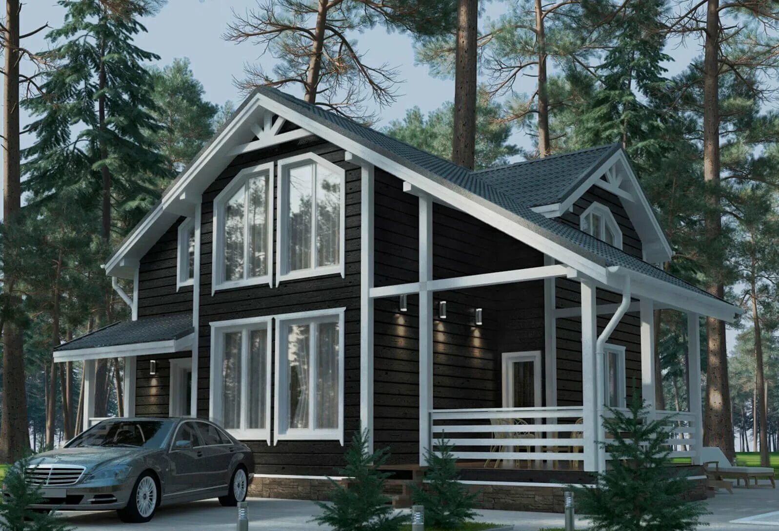 Дом в стиле Тимбер фрейм снаружи.