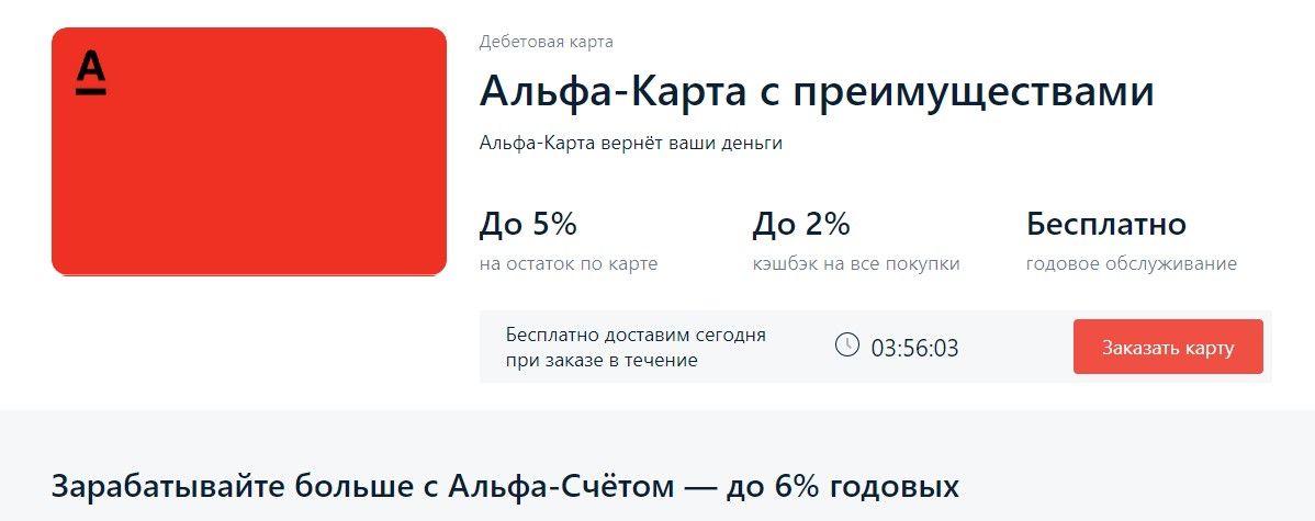 Карта альфа без комиссии