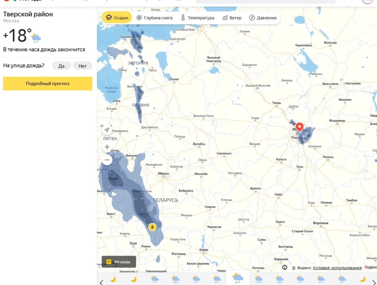 Карта осадков в коломне в реальном времени
