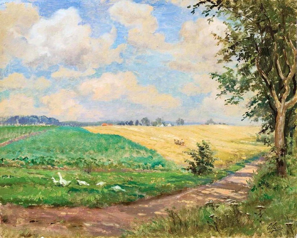 Картина дом окнами в поле Романова Елена.