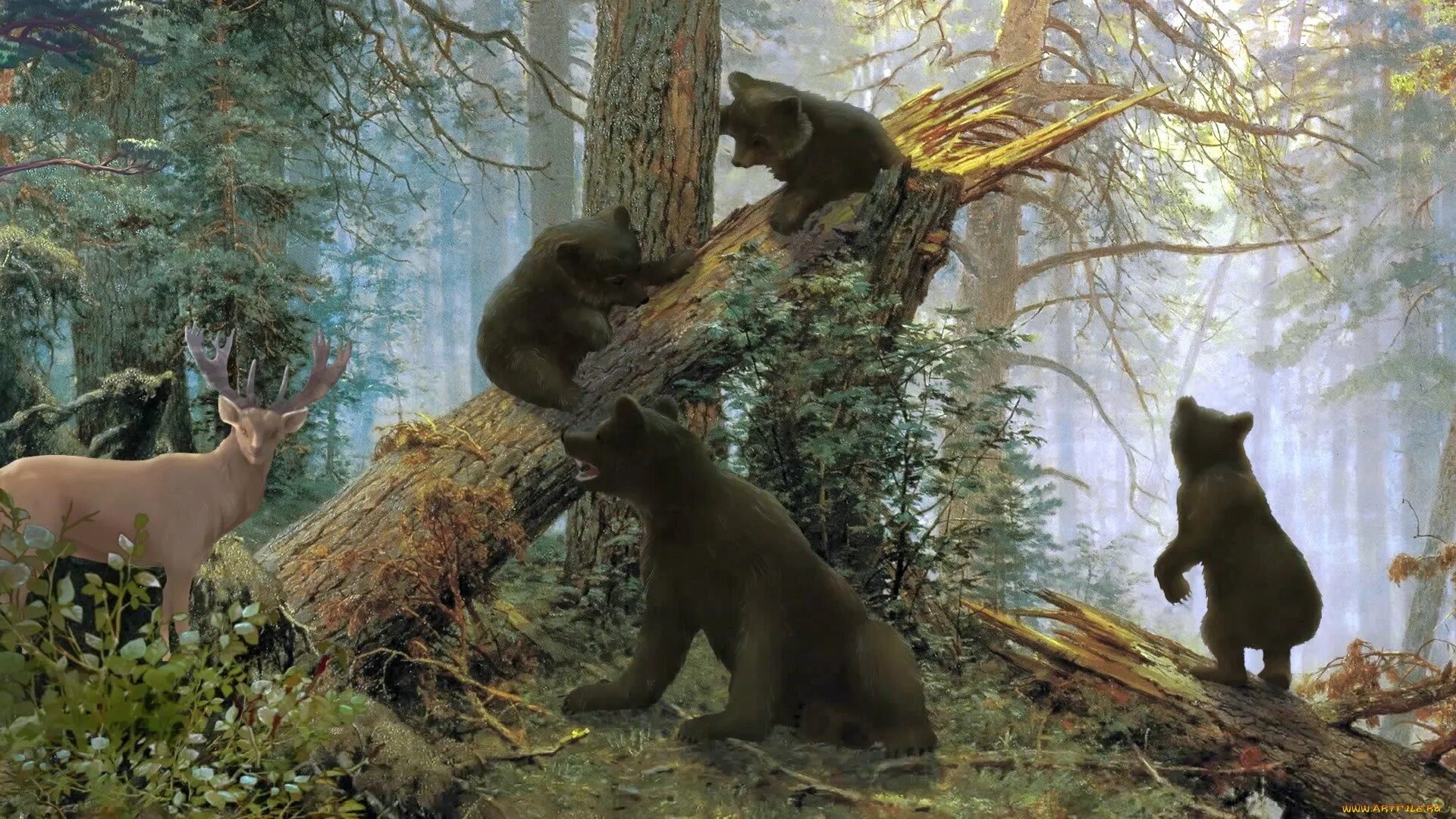 Картина мишки в лесу.
