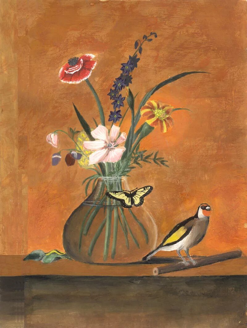 Толстого «букет цветов, бабочка и птичка».