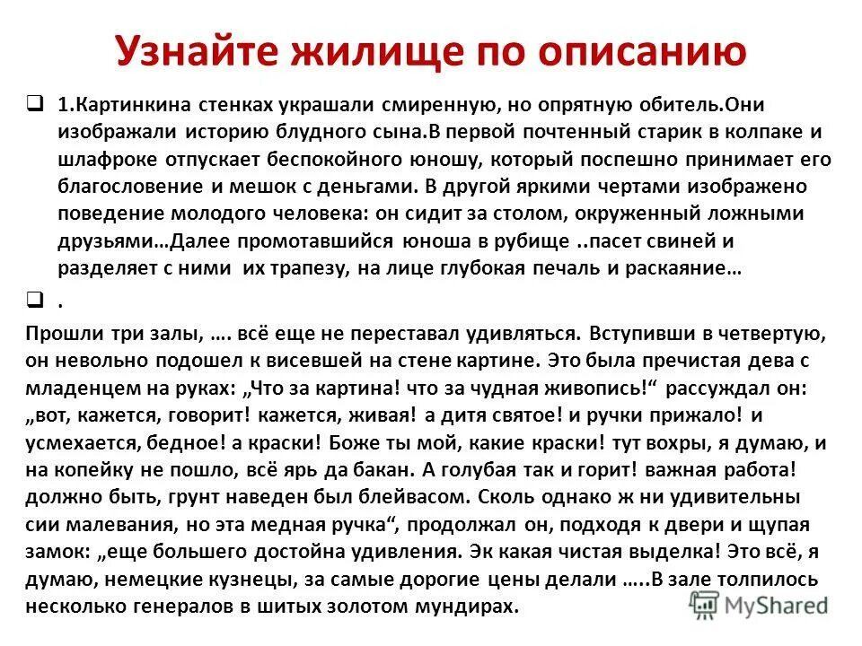 Описание смиренной но опрятной обители.